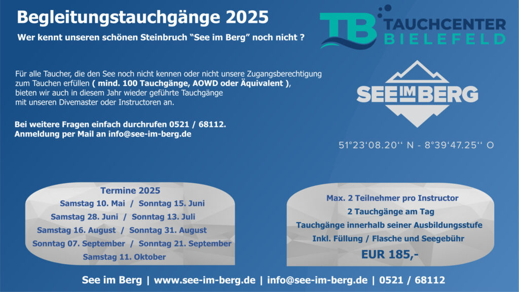 An folgenden Tagen planen wir einen Tagesausflug zu unserem “See im Berg” in Messinghausen. Der perfekte See für Sport- und Tec – Taucher. Die Ausfahrt ist für Taucher gedacht, die den See nicht kennen oder nicht unsere Zugangsberechtigung ( mind. 100 Tauchgänge, AOWD oder Äquivalent ) zum Tauchen erfüllen, bieten wir auch in diesem Jahr geführte Tauchgänge mit unseren Divemastern oder Instructoren an.